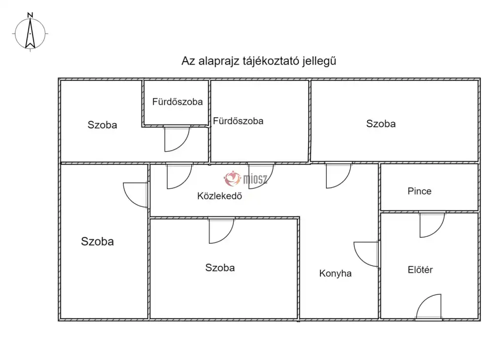 A belső térben: 4 szoba, közlekedő, 2 fürdőszoba, konyha,