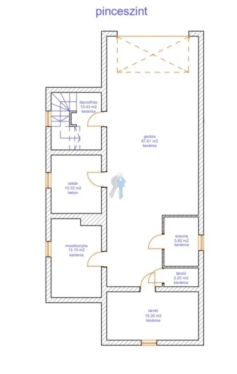 A földszinten egy 30 m²-es nappali, egy 18 m²-es terasz, egy hálószoba, tágas konyha étkezővel, dolgozószoba, fürdőszoba és külön WC található. Az emeleten egy tágas központi aula, négy hálószoba (9, 17, 19 és 32 m²), fürdőszoba, külön WC és egy teakonyha kapott helyet. A szuterén szinten garázs 3-4 autó számára, 380V ipari áram, három villanybojler, mosókonyha, szauna és több tárolóhelyiség is megtalálható. A spájz hideg és teljesen csempézett, így kiválóan alkalmas élelmiszerek hosszú távú, higiénikus tárolására.