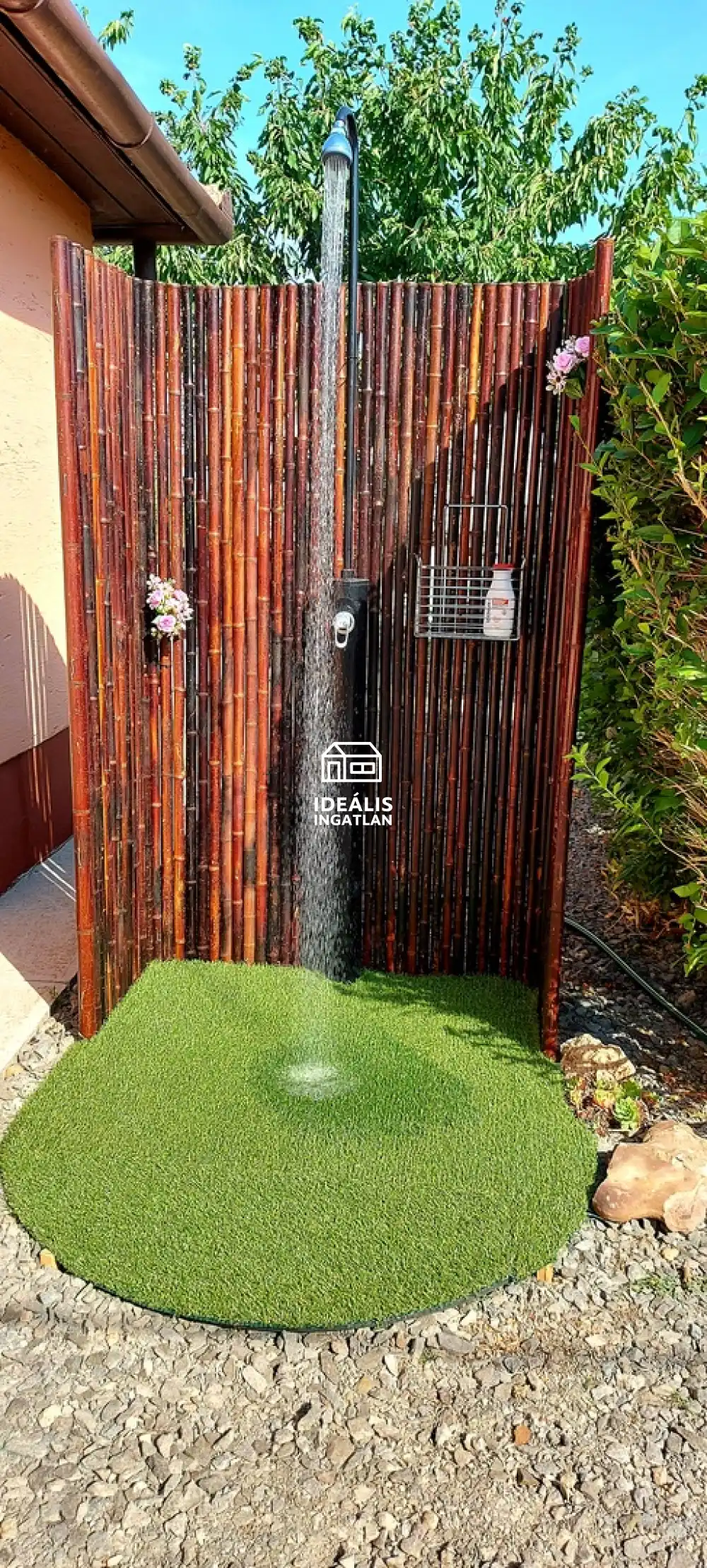 A képeken látható bútorokkal együtt kerül értékesítésre. A kertben kinti étkező, tűzrakóhely, kültéri zuhany valamint üvegszálas, jacuzzi-s dézsa található, amik a vételár részét képezik.