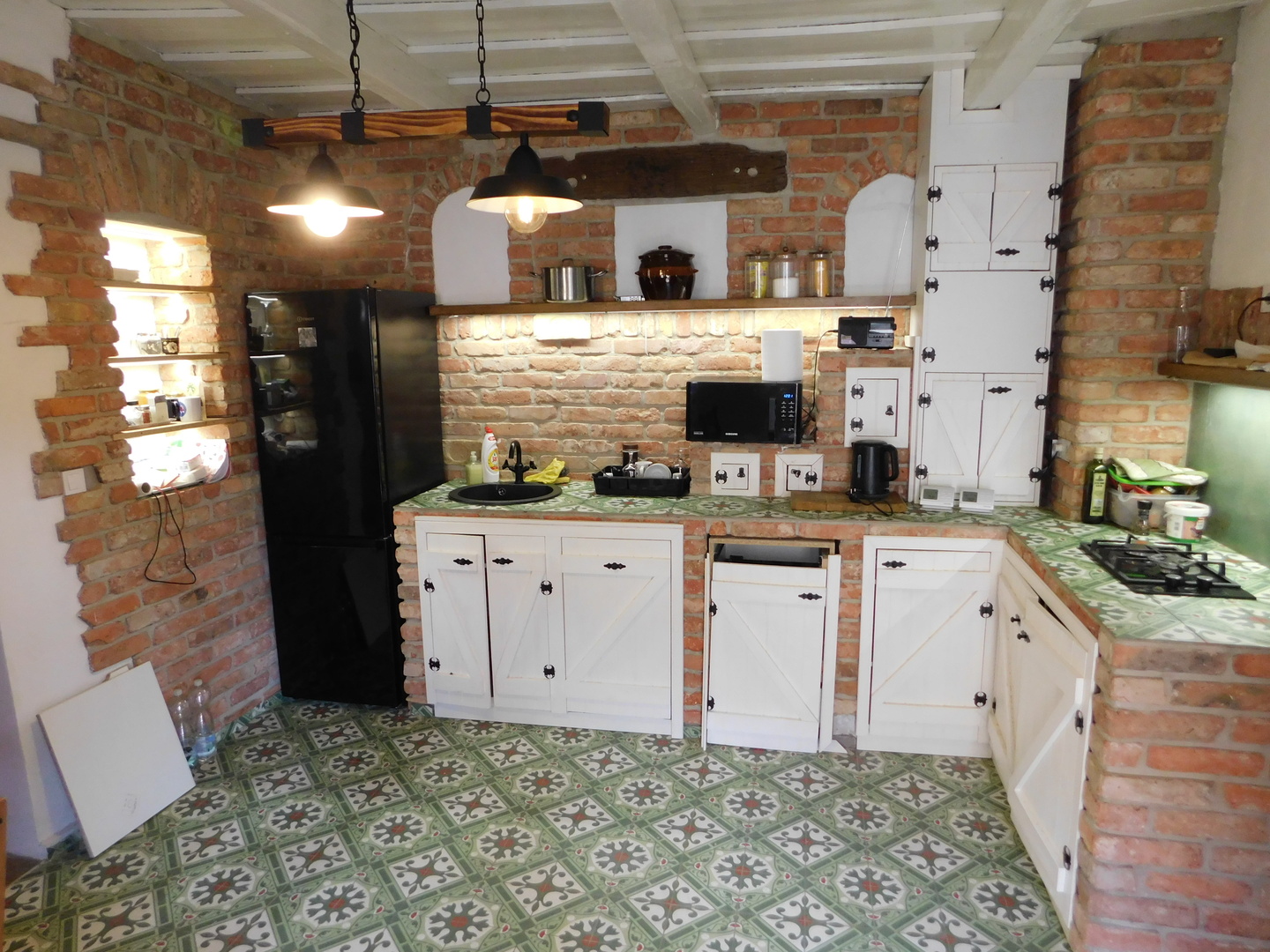 - egyedi kialakítású konyha és fürdőszoba