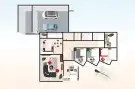 Fűtés gázkazánnal történik, radiátorokon keresztül. A nappaliban és a folyosón 1-1 hűtő-fűtő klíma került beszerelésre.