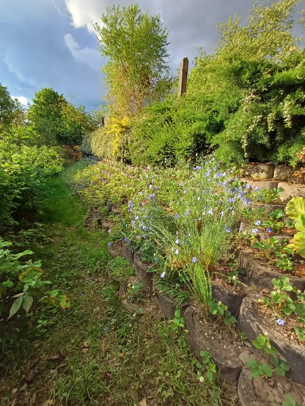 A házat szépen gondozott kert öleli körül. Árnyas diófa és termő cseresznye-, körte-, alma-, valamint barackfa is megtalálható az illatosan virágzó növények mellett. A kert végében konyhakertet találunk, ahonnan a saját termesztésű zöldségek, zamatos eper és szeder frissen kerülhet asztalunkra.