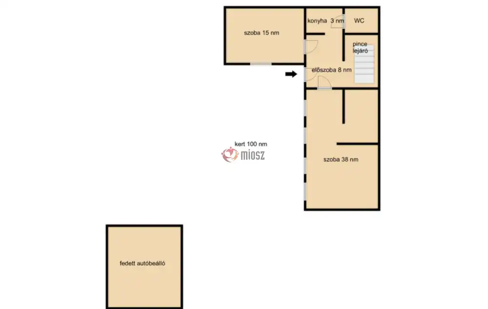 A házrészhez tartozik még egy saját 20 nm-es fedett autóbeálló.