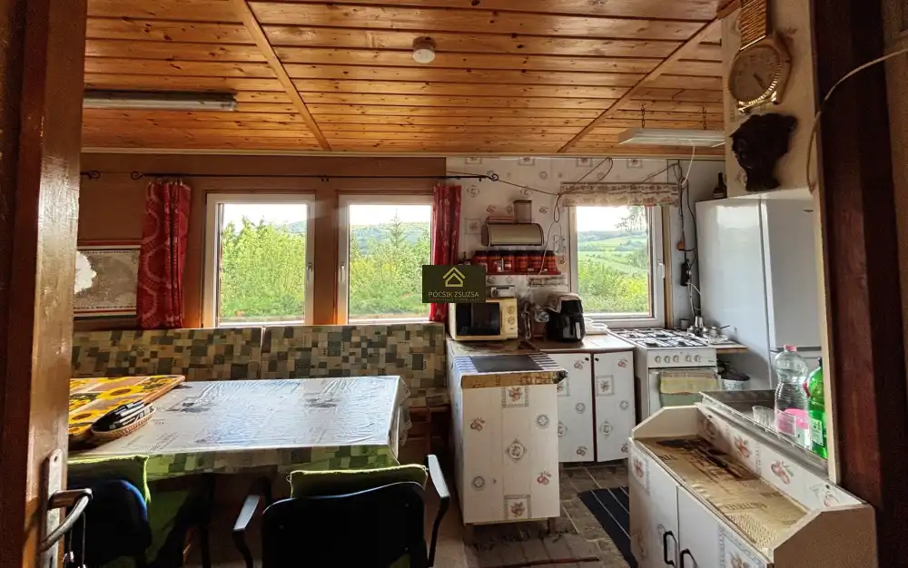 Csendes, nyugodt környezetben, egy 732 nm-es, gondozott, enyhén lejtős, teraszos kialakítású telken kínálunk megvételre egy könnyűszerkezetes nyaralót. A kertet dísznövények és gyümölcsfák színesítik, ideális választás a természet és kertészkedés szerelmeseinek.