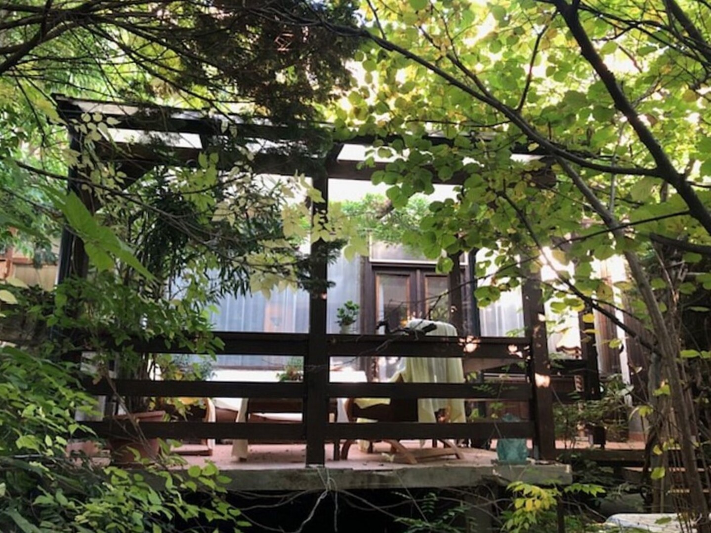 - A kert titokzatosan burjánzó, vadregényes hangulatú – egy valódi zöld menedék a város szívében. Természetesen könnyedén átalakítható, de aki szereti a rejtett zugokat, árnyas pihenőket, annak igazi kincs lehet.