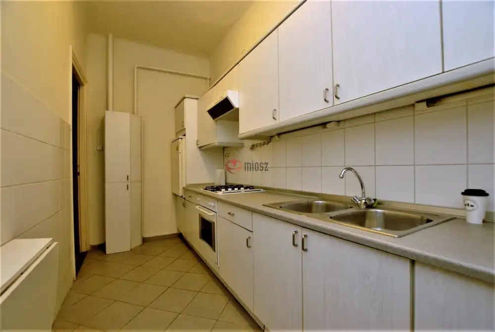 A lakásba lépve, az előtérből jobbra találjuk a félszobát, és konyhát, beépített konyhabútorral, gáz főzőlappal, tűzhellyel, páraelszívóval, fagyasztós hűtővel. Szintén az előtérből balra egy külön WC és egy kamra található. Innen tovább haladva, a hallból balra a tágas nappali, jobbra a nagyobbik háló, amiből a kádas fürdő is nyílik. A szobák, az előtér és a hall parkettával burkolt, ami jó állapotnak örvend. A lakás fűtését és a melegvizet Cirkó kazán biztosítja, ami a fürdőben található, ami szintén üzemképes és rendszeresen karbantartott.