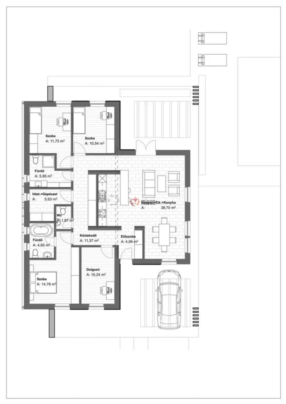 A ház ideális nagycsaládnak és/vagy home officban dolgozóknak egyaránt, mivel kialakításánál fogva mind a szeparált magánszféra lehetősége, mind a kényelmes és tágas közösségi terek adottak.