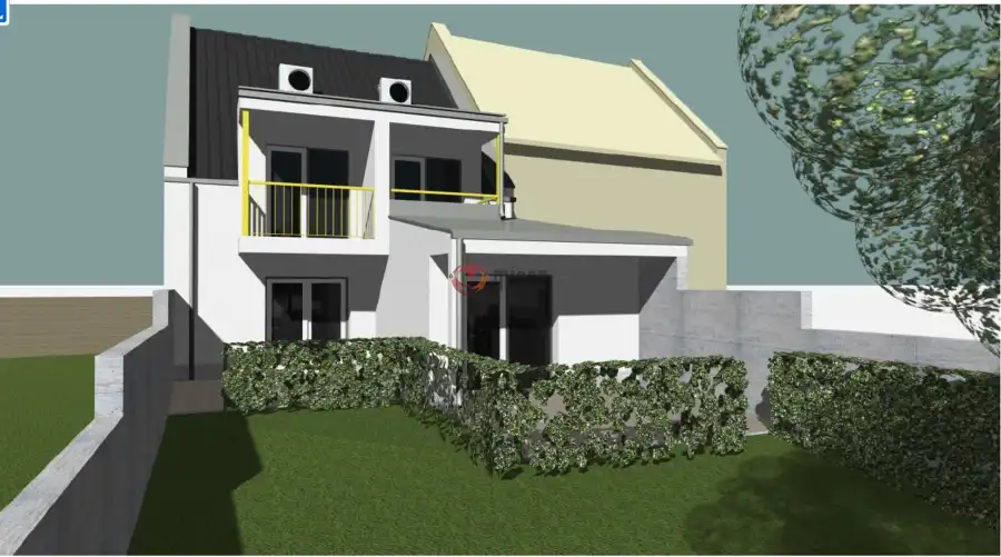 ELOSZTÁS alsó szinten konyha, előtér, toalett, udvari terasz, emeleti/ tetőtér/ részen nappali, szoba, fürdőszoba, udvari erkély. ÁRA: 69.830.000. FT